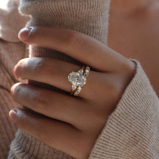 Oval Moissanite Duo Ring — Pavé Stacking Band Set