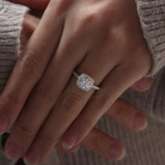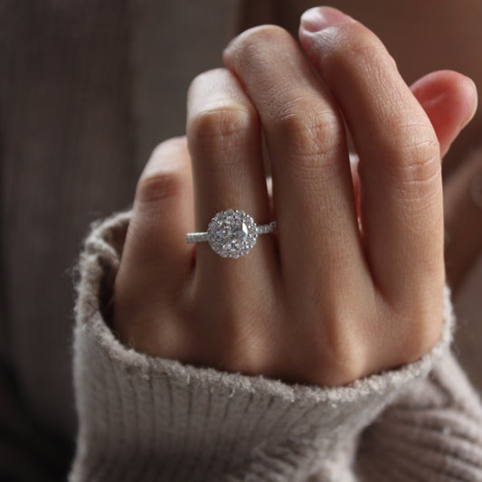 Halo Pavé Moissanite Ring | 18K Gold Plated Sterling Silver