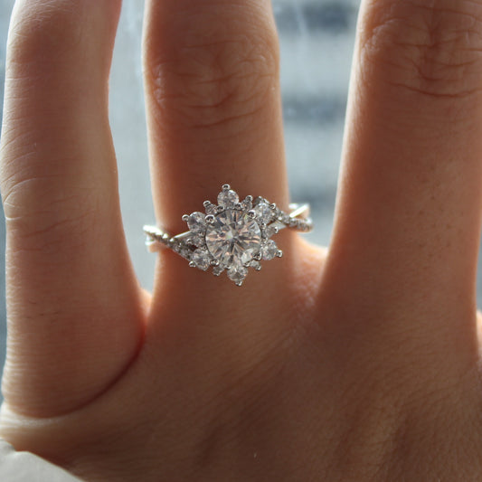 Lunaria Floral Halo Moissanite Ring – 18K Gold Plated Sterling Silver
