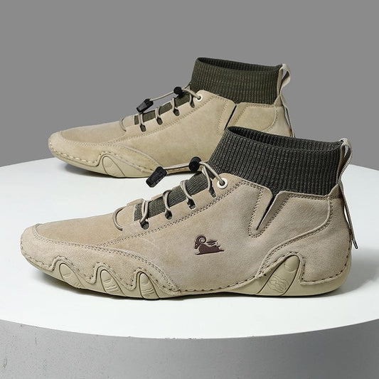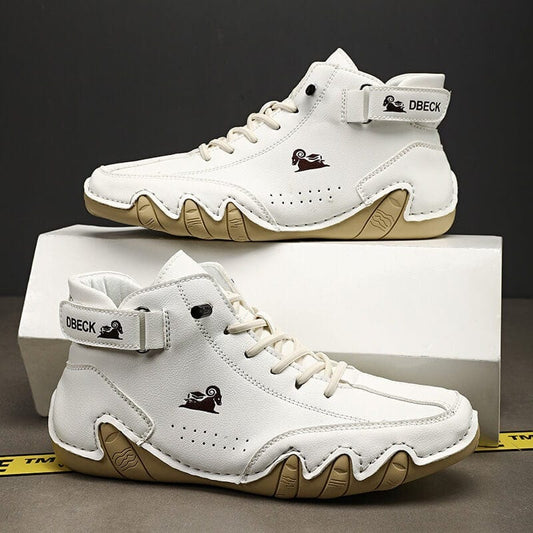 Men’s Lightweight Waterproof Leather Outdoor Walking Shoes – Comfortable High-Top Soft Barefoot Hiking Boots