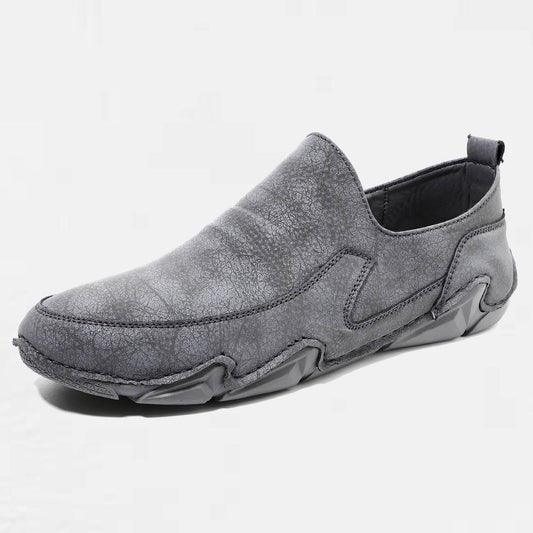 Men’s Flexible Leather Casual Shoes – Soft Sole, Hand-Stitched Outdoor Walking Sneakers, Slip-On Comfort Driving Loafers