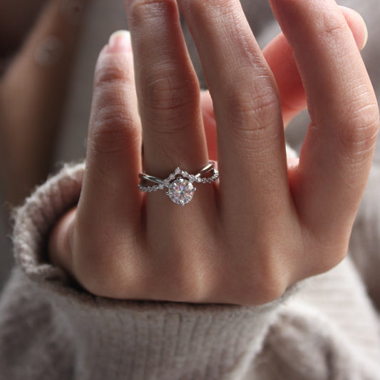 From refined solitaire and halo styles to sculptural stacking bands, curved contours, and statement designs, each ring is crafted in 18K Gold Plated / 925 Sterling Silver (base) and set with brilliant moissanite for lasting sparkle and versatility.