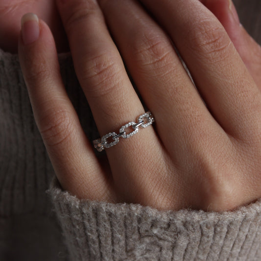 Stellar Chain Pavé Moissanite Band Ring – 18K Gold Plated Sterling Silver