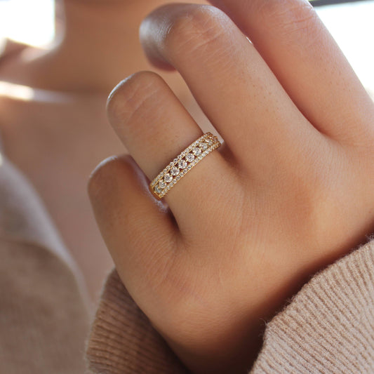 Double Row Moissanite Pavé Curved Band | 18K Gold Plated Sterling Silver Statement Stacking Ring