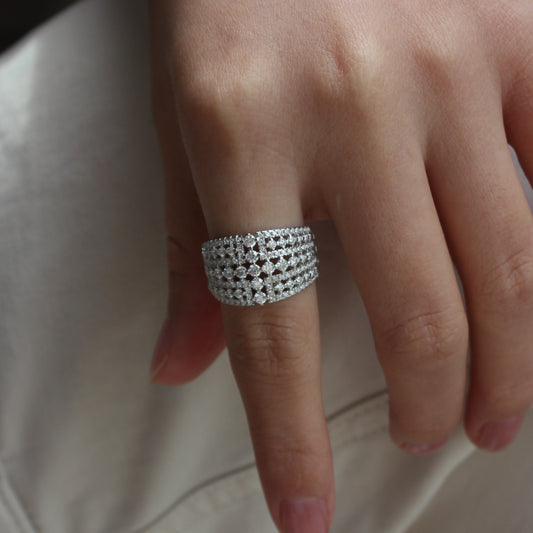 Celeste Wide Pavé Moissanite Ring | 18K Gold Plated Sterling Silver