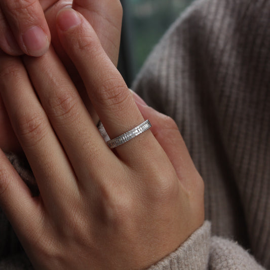 Baguette Pavé Moissanite Band Ring | 18K Gold Plated Sterling Silver