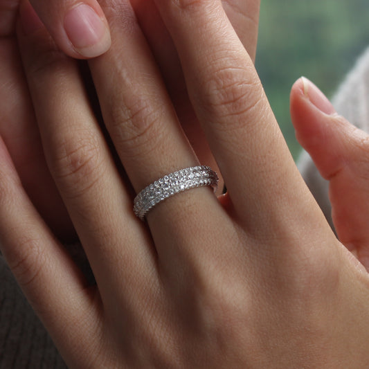 Celeste Triple Row Pavé Band | 18K White Gold Plated Sterling Silver Ring