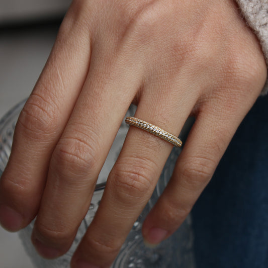 Triple Row Pavé Moissanite Band | 18K Gold Plated Sterling Silver Ring