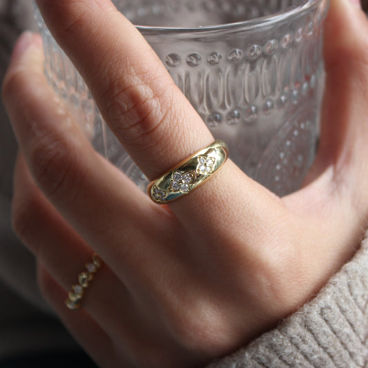 Aurelia Floral Pavé Moissanite Band | 18K Gold Plated Sterling Silver Ring