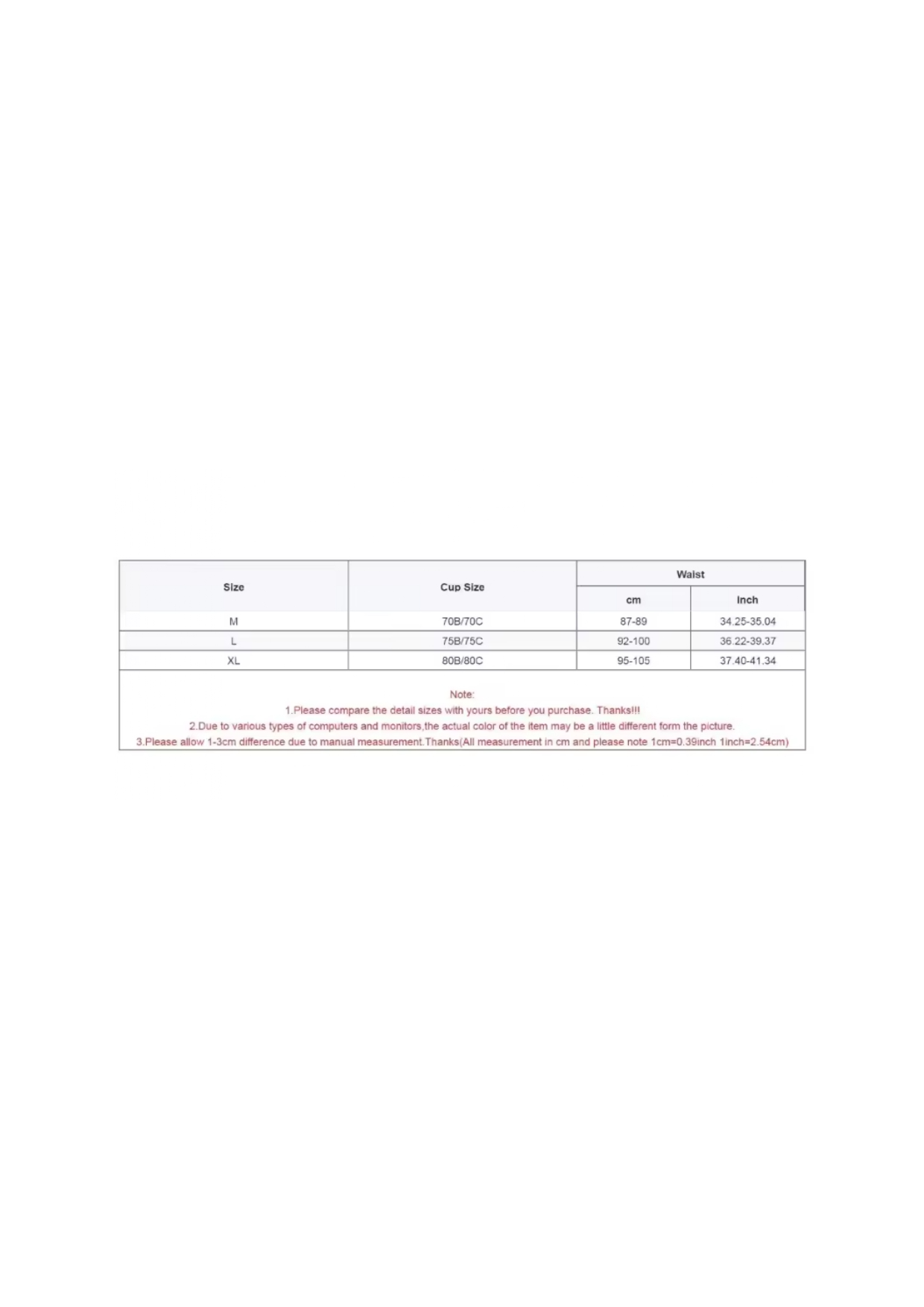 - Size XL / Cup 80B–80C → Waist 95–105 cm (37.40–41.34 in)