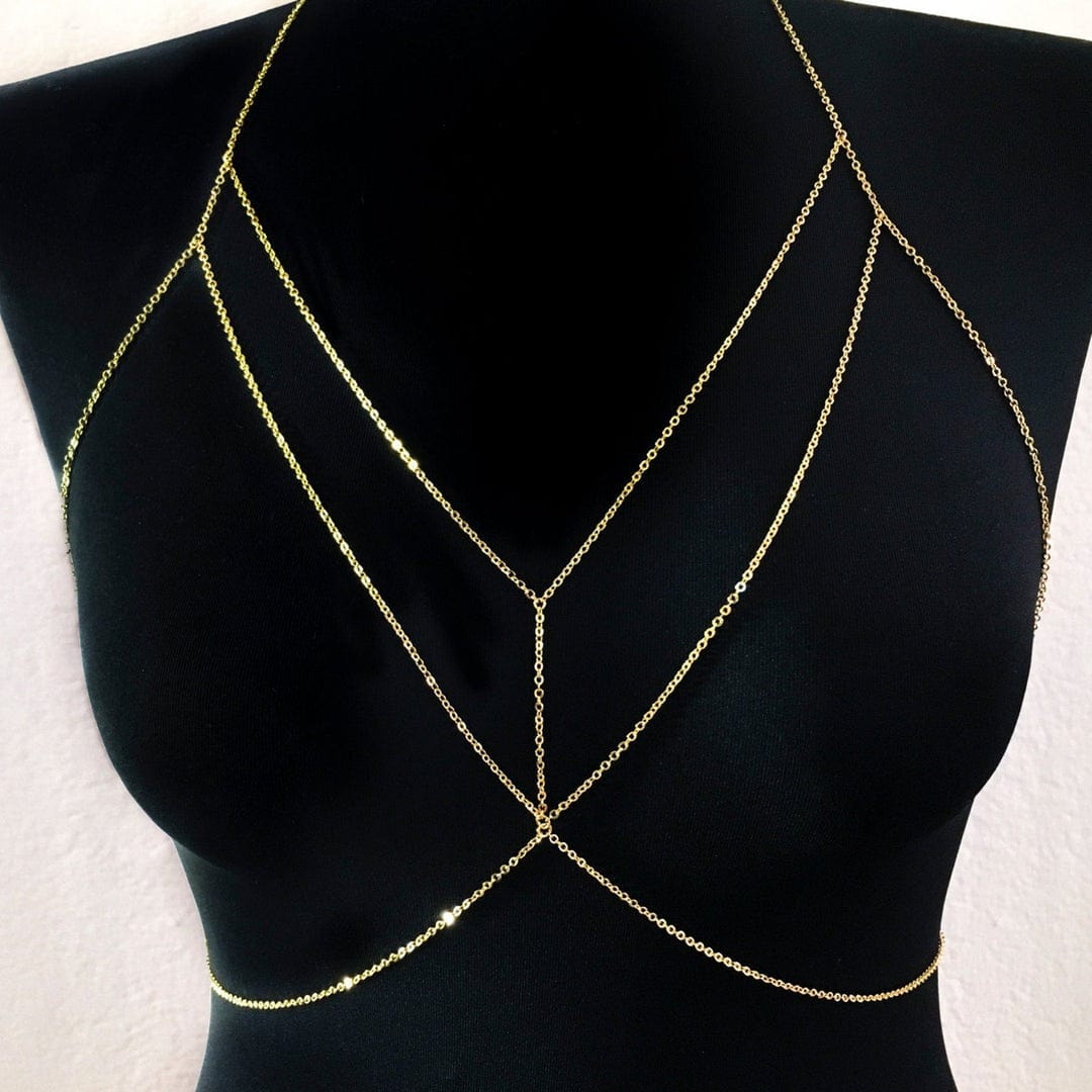 The Layered Bra Chain is simple yet very effective piece of body jewelry. It looks great under any outfit, party dress, beach wear, lingerie or natural! A new and sexy trend that you have to pick up!