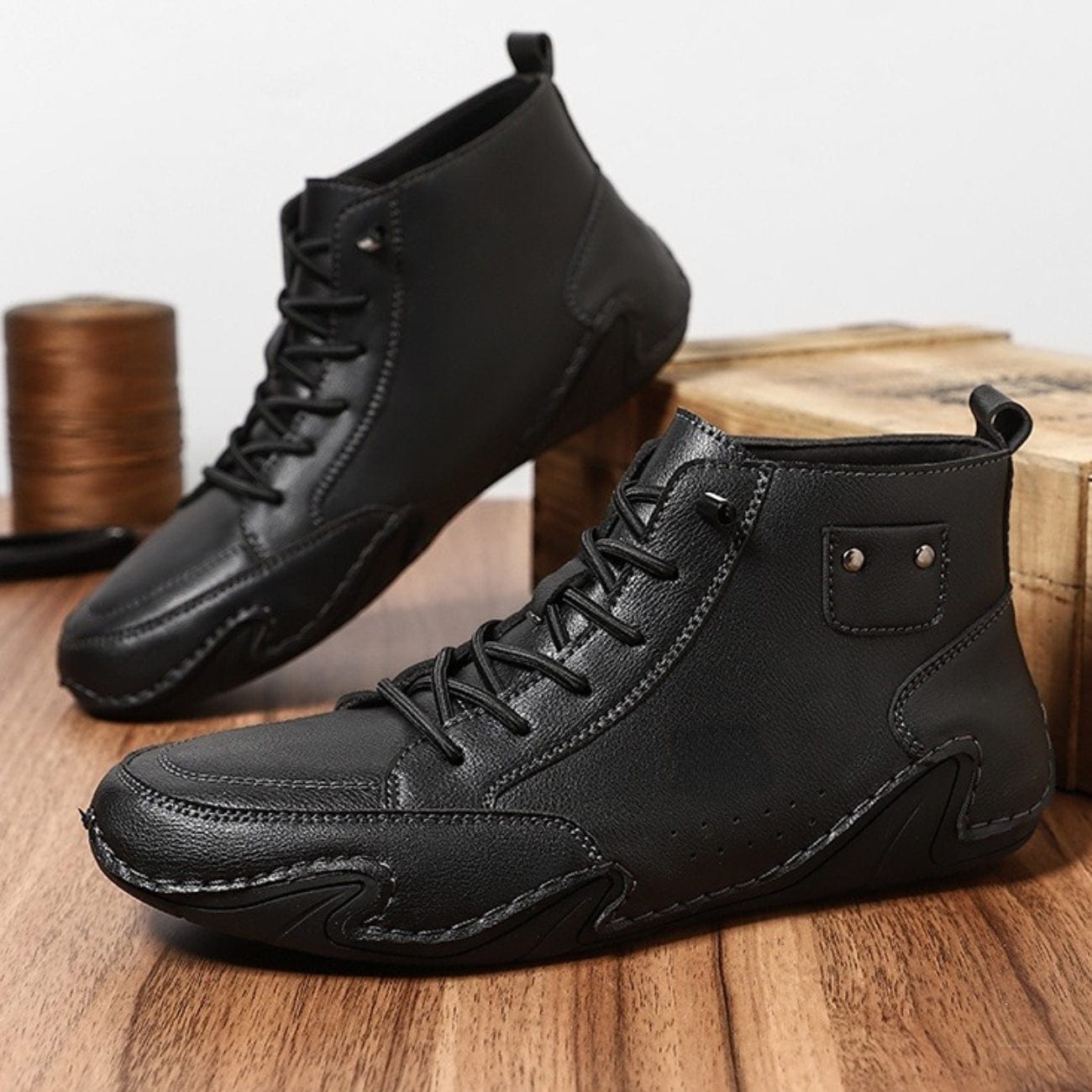 Men’s Waterproof Barefoot Hiking Boots – High-Top Soft Leather Outdoor Walking Shoes